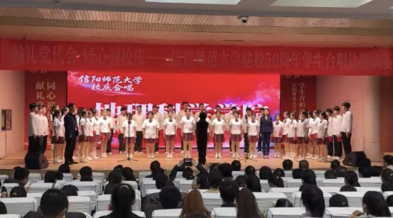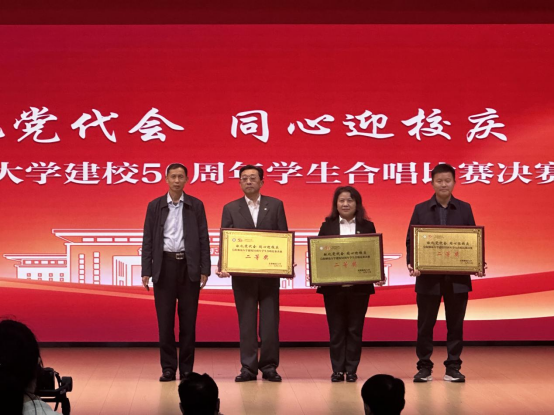 校庆合唱赛现场青春飞扬,十支院系代表队轮番登台,以歌声传递深情,以旋律凝聚力量。我们学子倾情献唱校歌《托起民族的希望》与自选曲目《明天会更好》,用激昂的歌声礼赞母校五十载峥嵘岁月,用真挚的情感绘就师大未来崭新画卷。终场时分,全体师生肃然起立,齐声高唱校歌。经激烈角逐,我们荣膺二等奖。